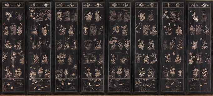 당구대에는 대한제국의 상징 무늬인 오얏꽃이 장식되어 있고, 당구대 뒤에는 매화도병풍과 나전백경도 병풍이